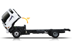 Nghiêng Cab Dịch vụ kiểm tra dễ dàng và thường xuyên hơn bao giờ hết nhờ vào buồng lái nghiêng 50-độ giúp nhanh chóng và dễ dàng cho các thao tác trong khoang động cơ. Cabin được thiết kế trên hai gắn kết dầu cao su đệm. Đổi mới thiết kế này là một trong những chìa khóa để đi xe nhẹ nhàng, mềm mại.