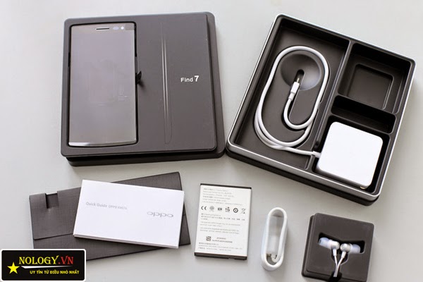 Thiết kế của Oppo Find 7 được đánh giá khá cao từ thiết kế vỏ hộp. Vỏ hộp của Oppo Find 7 được thiết kế bằng nhựa, màu đen khá chắc chắn. Ngoài ra bộ phụ kiện của Oppo find 7 được thiết kế tỉ mỉ đến từng chi tiết nhỏ.