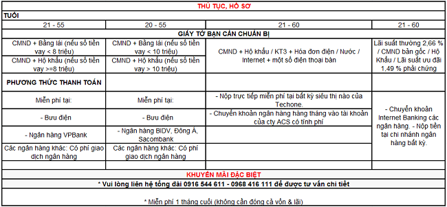 Khách hàng thanh toán đầy đủ, đúng hạn các kỳ trả góp và không tất toán hợp đồng vay sớm sẽ được miễn 1 kỳ thanh toán cuối cùng (chỉ phải thanh toán 11 tháng).