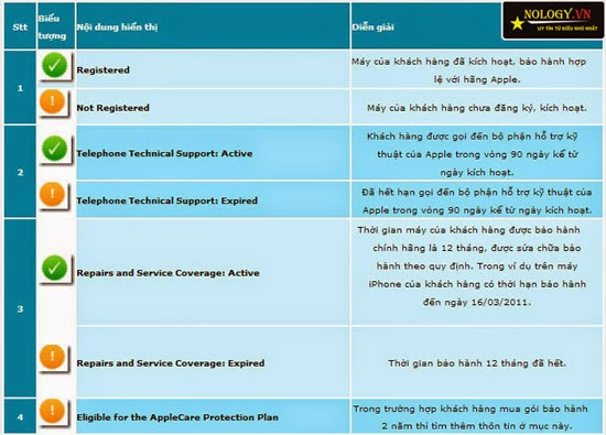 Trước mắt bạn sẽ là một màn hình cho biết thông tin chi tiết về tình trạng bảo hành của máy Iphone 4s, kể cả thời gian còn lại, hỗ trợ qua điện thoại, bạn đủ điều kiện để sửa chữa phục hồi hay không, và bạn đủ điều kiện để gia hạn bảo hành hay không.