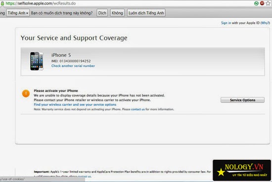 + Nếu máy đã active( đã có người dùng rồi và không còn mới nữa) bạn sẽ thấy như hình , ở đây bạn có thể biết được máy mình active từ ngày nào và ngày hết bảo hành apple .
