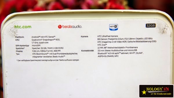 Thông tin của HTC One M7 được ghi sau hộp |