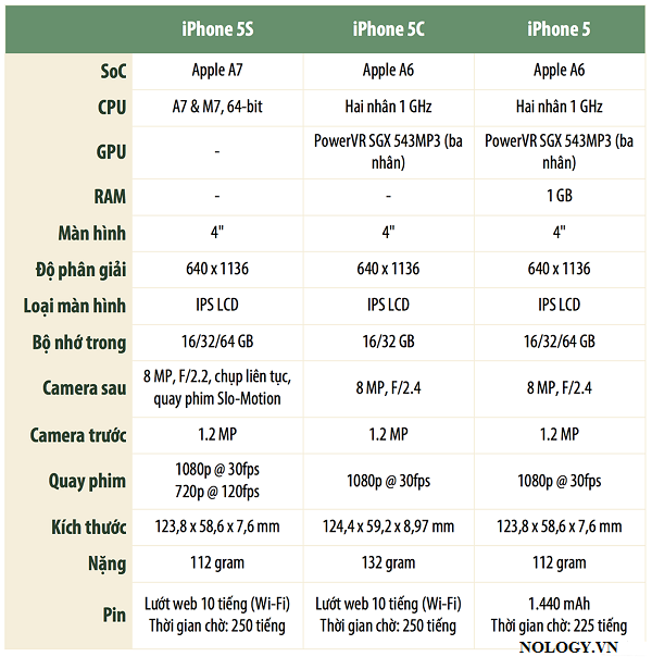 Sau đây chúng ta sẽ đi tìm hiểu về thông số kỹ thuật , cấu hình chiếc iphone 5 cũ tại NOLOGY.