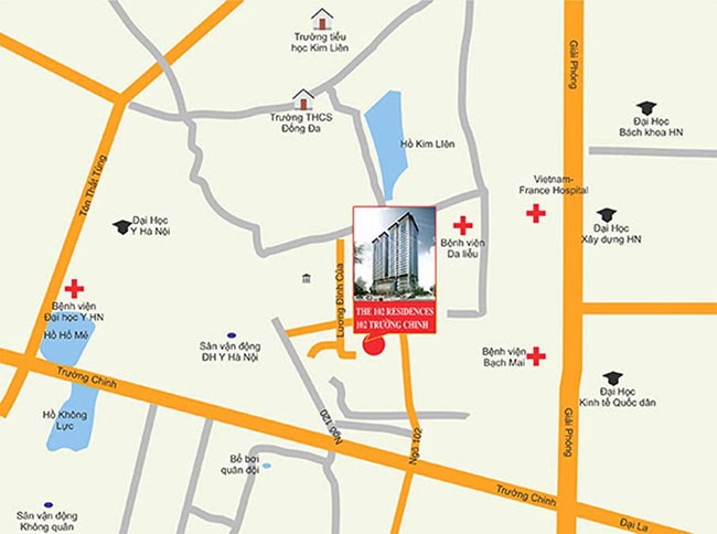 - Dự án tọa lạc tại khu đất “vàng” của Quận Đống Đa, với mật độ dân cư đông đúc. - Nằm liền kề tuyến đường huyết mạch: Trường Chinh (đang mở rộng), Phố Tôn Thất Tùng – Phạm Ngọc Thạch, Đường Giải phóng, Đại La, Ngã 4 Sở… - Cách trung tâm Hồ Hoàn Kiếm 3km, gần quốc lộ 1A và bến xe khách phía Nam. - Gần các trường Tiểu học Kim Liên, THCS Đống Đa, ĐH Y, ĐH Kinh Tế Quốc Dân, ĐH Xây Dựng, ĐH Bách Khoa, ĐH Công Đoàn, ĐH Thủy Lợi… - Ngoài ra còn rất gần: Bệnh viện Bạch Mai, Bệnh viện Da Liễu, Bệnh viện Việt Pháp, BV ĐH Y. - Gần các trung tâm mua sắm: Parkson, Mipec, Royalcity, Ocen Mark…