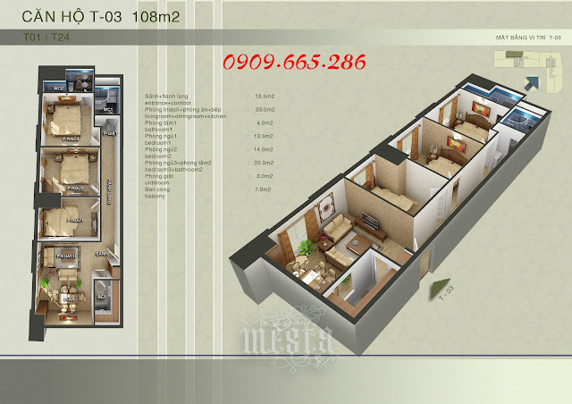 + Căn Hộ 108m : Đông Nam - Tây Bắc