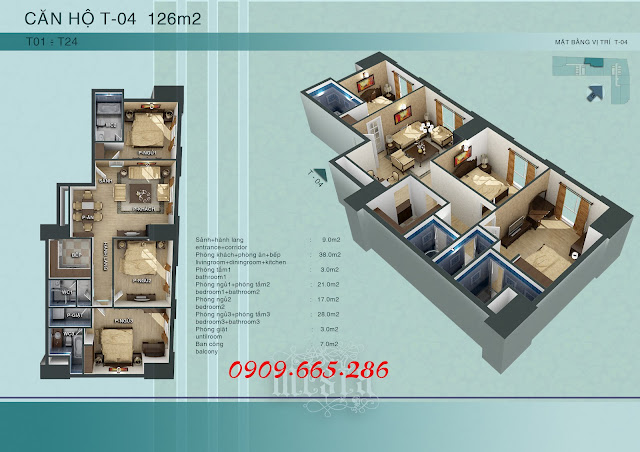 + Căn Hộ 126m2: Đông Nam - Tây Bắc