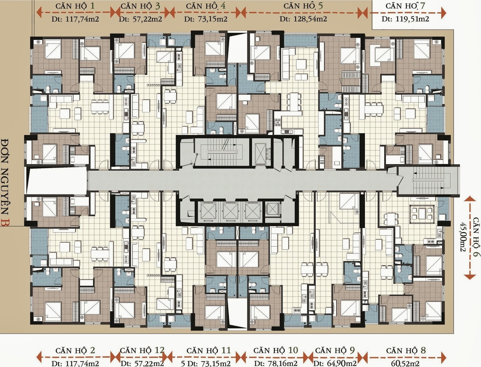 Các căn hộ được bố trí hợp lý, tối ưu hóa diện tích sử dụng, đảm bảo tất cả các căn đều có ánh sáng tự nhiên