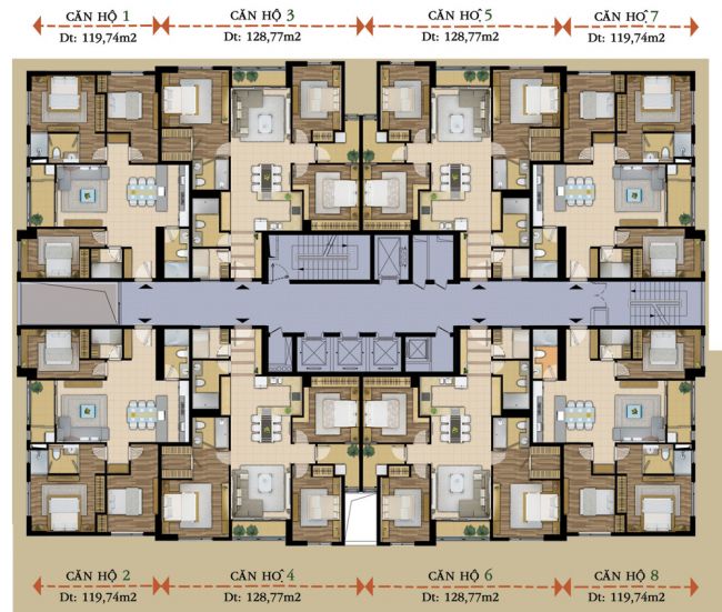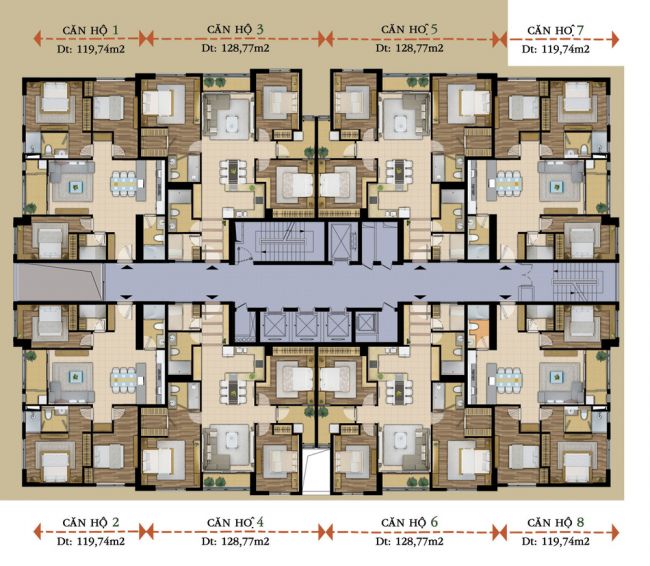 • Loại 2: S2 = 128,77m2