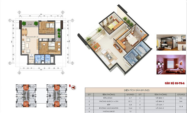 - Diện tích căn hộ : 89m2 – 95m2 – 105m2 - 124 m2