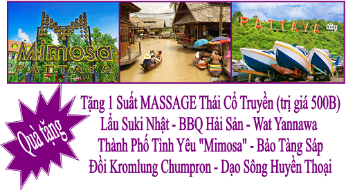 • Tour Thái lan 6N5Đ : (chương trình mới: massage, mimosa, khaokhew, BBQ) >>7,9,11,12,14,16,18,21,23,25,28,30/10 giá 6,100,000 VND