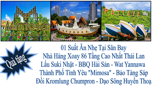 Tour Thái lan 6 ngày 5 đêm : KHÔNG CÓ BUFER 86 TẦNG, có Massage + vườn thú Khaokhoew + dạo thuyền