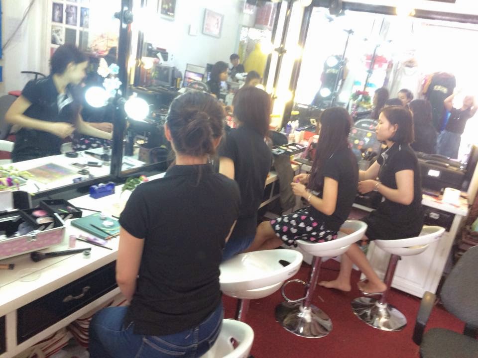 Là một chuyên gia trang điểm, ngoài việc trang điểm các khách hàng là cô dâu, dạ tiệc hay người mẫu, thì việc đào tạo những lứa thợ mới ra nghề làm tôi tự hào hơn hết. Không giống như những trung tâm, trường lớp khác, tôi và ekip vẫn giữ nguyên cách đào tạo “cổ hủ”, tức là 1 thầy – 1 trò, dạy theo khả năng của từng bạn, kèm cặp riêng và có những bài học khác nhau. Điều đó có nghĩa là tôi – người hướng dẫn các bạn, sẽ mất nhiều thời gian hơn, vất vả hơn nhưng bù lại, các kiến thức & kĩ năng các bạn nhận lại sẽ tăng theo cấp số nhân, tiến bộ thấy rõ qua từng buổi học, và 1 lớp học như thế thông thường sẽ không quá 3 bạn/1 buổi. Các bạn sẽ thắc mắc tại sao ko phát tài liệu giấy tờ hình ảnh như những chỗ khác, tôi xin trả lời rằng tôi sẽ chỉ dẫn các bạn thực hành 100%, dĩ nhiên là có lí thuyết, có những nguyên tắc riêng nhưng luôn đi kèm trong lúc các bạn thực hành trên mặt mẫu.
