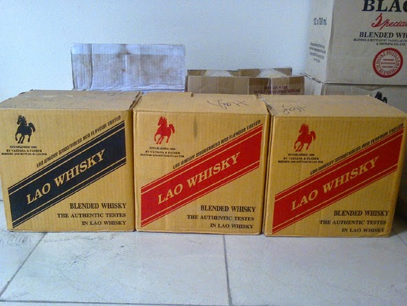 Rượu Lào Whisky có bốn loại: Loại chai đen, chai đỏ, chai bạc, chai xanh.