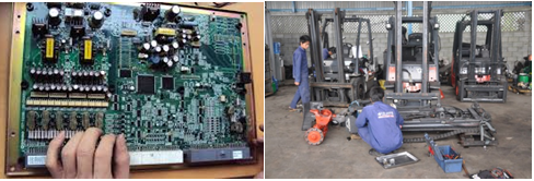 - Nhận sửa chữa, thiết kế, thay thế mới các board điều khiển toàn bộ hệ thống, điều khiển tốc độ động cơ DC, AC 03 phase của xe nâng, có thể lắp đặt cho mọi loại xe nâng điện đời mới mà không bỏ qua bất cứ tín hiệu an toàn, tính năng ưu việt của xe nâng…