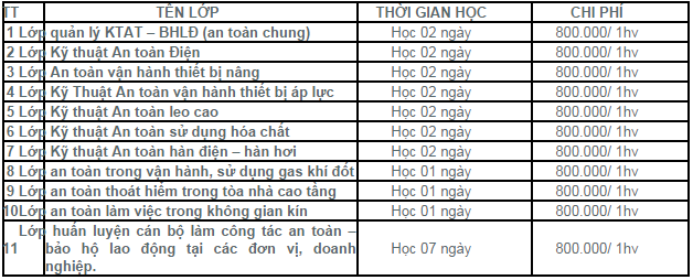 5. Chứng nhận/ Chứng chỉ: Kết thúc khóa học học viên được cấp chứng chỉ của “Cục an toàn lao động”, theo đúng quy định của Thông tư số: 27/2013/TT-BLĐTBXH.