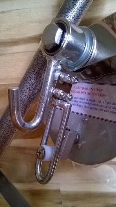 Chú ý: móc võng được cãi tiến nằm trên cao chứ không nằm dưới cùng như của máy đưa võng trên thị trường