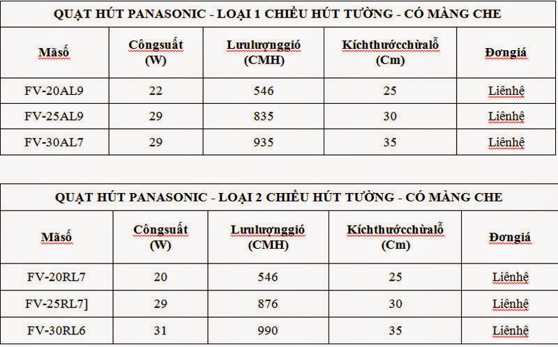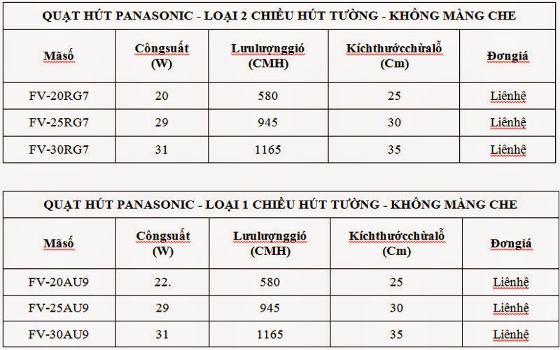 2 - QUẠT HÚT PANASONIC – QUẠT HÚT TRẦNĐể nhận chiết khấu ưu đãi, xin liên hệ: