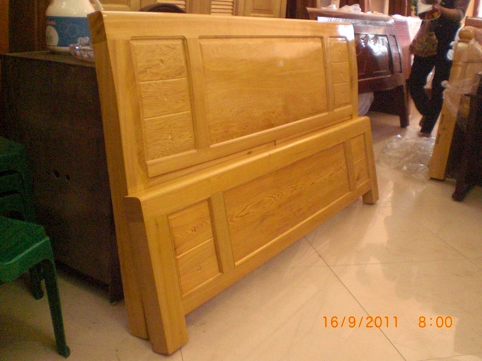 Bộ giường ngủ bằng gỗ Xoan Đào tự nhiên, sơn màu tự nhiên |