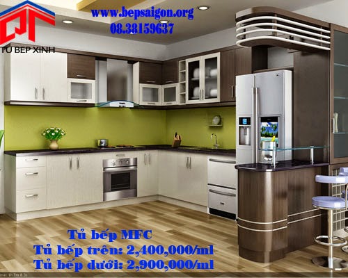 Nhà bếp đẹp, sang trọng với tủ bếp gỗ công nghiệp. (08)38159637