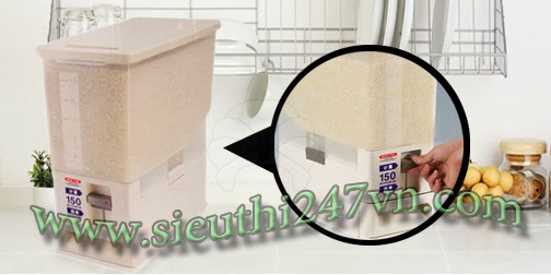 - Tiết kiệm diện tích: Chiếc thùng đựng gạo thông minh này có thể đựng được 12kg, có thể được kê gọn gàng trong bếp, bên dưới kệ bếp.... sẽ đem đến không gian bếp nhà bạn sự ngăn nắp và cũng tiện cho việc lấy gạo nấu cơm hàng ngày.
