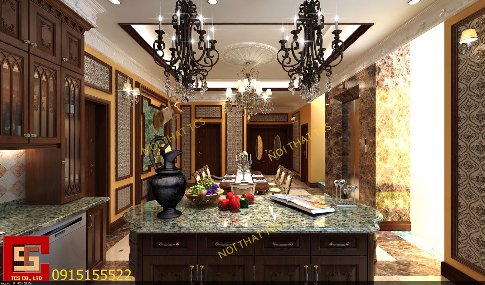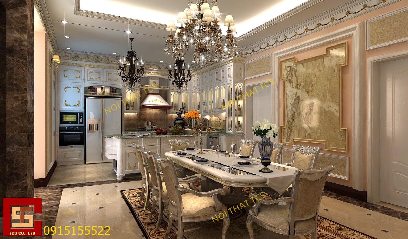 Nội thất phòng bếp phong cách tân cổ điển
