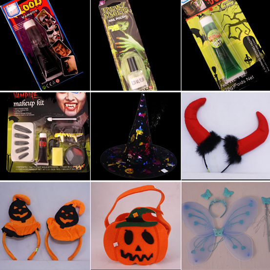 *** Phụ kiện hoá trang Halloween: màu trang điểm, tuýt máu, răng nanh, nón phù thuỷ, sơn móng dạ quang, cài sừng, nón bí, túi bí ngô, cánh thiên thần…