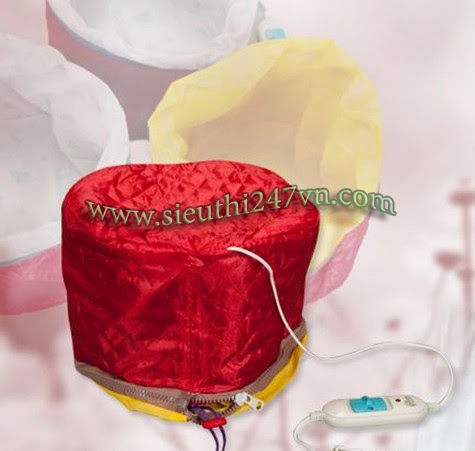 - Mũ hấp tóc có dạng hình trụ, gồm 2 phần. Phần vỏ mũ gồm 2 lớp vải, ở giữa là hệ thống dây mai so cung cấp nhiệt. Phần mũ ủ được làm bằng nilon.