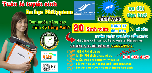 Hiện nay, nhu cầu học tiếng Anh chất lượng ngày càng cao do nhiều sinh viên Việt Nam muốn trang bị cho mình nền tảng tiếng Anh thật tốt trước khi đi du học ở các nước nói tiếng Anh và đạt được một mức lương cao với công việc tốt. Hiểu được nhu cầu học tiếng Anh đạt chất lượng tốt, không tốn nhiều thời gian với chi phí phải chăng, Goldenway Global Education có ưu đãi đặc biệt dành cho các bạn có nhu cầu nâng cao trình độ tiếng Anh để bạn có cơ hội đidu học tiếng Anh tại Philippines. Theo chương trình, GOLDENWAY sẽ có nhiều ưu đãi cho học viên đăng ký khóa học tiếng Anh và còn nhiều quà tặng hấp dẫn khác từ công ty đang chờ đón các bạn!