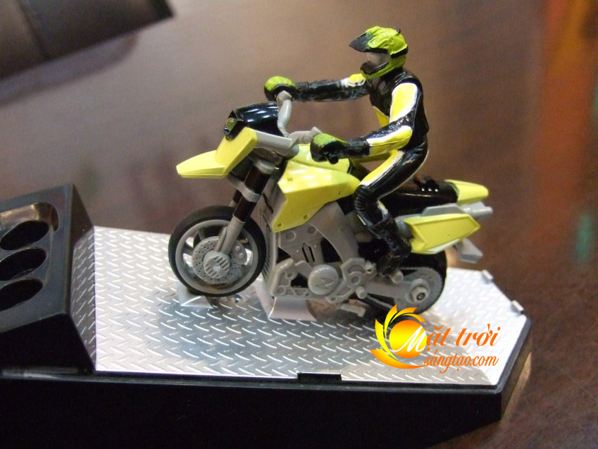 Với thiết kế siêu nhỏ không giới hạn về điều kiện diện tích, có thể chơi mọi nơi, chơi trong nhà, chơi tại văn phòng…Điểm thú vị của món đồ chơi này được nhiều người chơi mô hình yêu thích đó là khả năng cân bằng tự động với 2 bánh (bánh trước, bánh sau không cần bánh phụ để cân bằng). Ngoài ra trên xe mô tô mini điều khiển từ xa có gắn người lái xe được làm bằng chất liệu nhựa dẻo cao cấp không dính liền xe, bạn có thể tùy chỉnh tư thế ngồi lái của “anh ta” ở nhiều góc độ để tạo ra những pha trình diễn mô tô đặc sắc như: