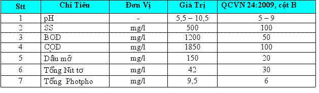 Nước thải sản xuất bánh kẹo có nồng độ ô nhiễm khá cao, chủ yếu là các chất hữu cơ, cặn lơ lững và các hạt chất lỏng (dầu, mỡ). Hàm lượng N và P trong nước thải gây nên hiện tượng phú dưỡng hóa nguồn tiếp nhận nước thải, làm thiếu oxy trong nước, ảnh hưởng đến đời sống các thủy sinh vật, xảy ra quá trình phân hủy kị khí các chất hữu cơ trong nước, gây mùi hôi thối. Các chất lơ lững trong nước gây độ đục cho nguồn nước tiếp nhận. Các chất béo tạo lớp váng trên mặt nước, gây thiếu oxy trong nước gây mùi khó chịu. Ngoài ra nước thải còn chứa một số chất tẩy rửa từ quá trình vệ sinh nhà, máy móc, thiết bị… Nồng độ ô nhiễm đặc trưng của nước thải bánh kẹo thể hiện cụ thể ở bảng sau.