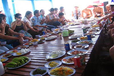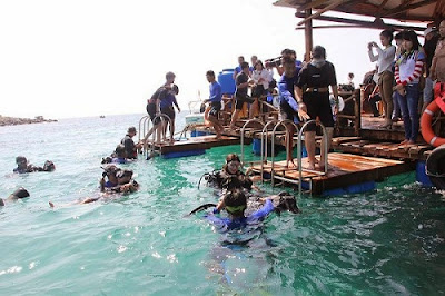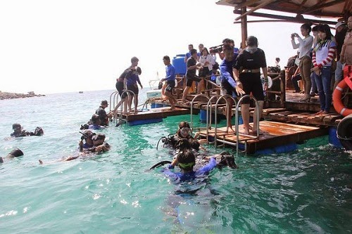 Đến với nhà bè trên biển này du khách được lặn biển khám phá đại dương ở độ sâu 6m và được phục vụ các món ăn nhẹ, nước uống, thưởng thức các tiết mục giải trí, trò chơi vui nhộn trên sân khấu, ăn trưa với thực đơn là các món đặc sản miền biển…