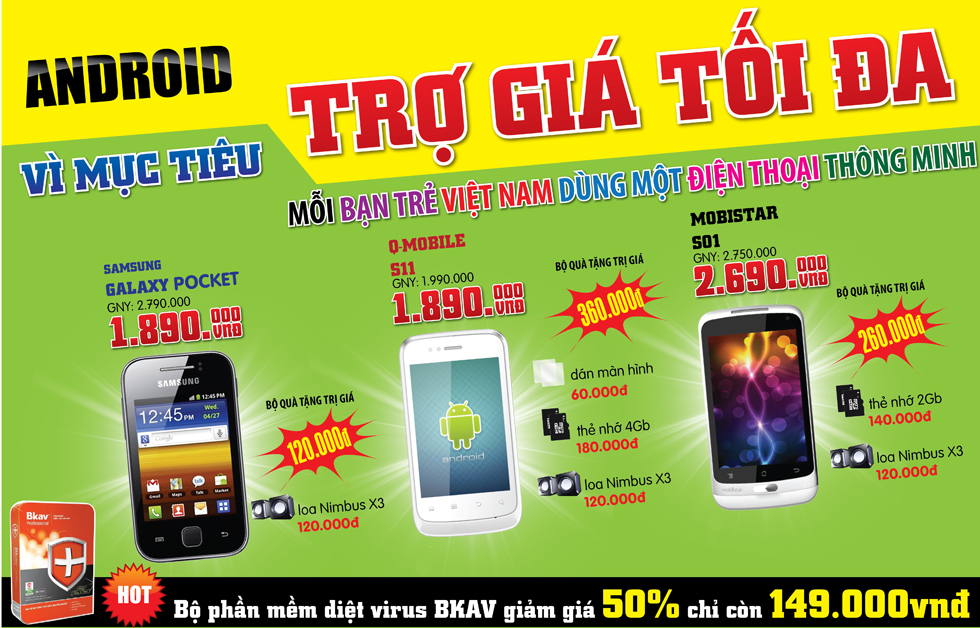 Lựa chọn 3: Mobistar S01Tính năng mạnh mẽ, màn hình rộng, kết nối 3G tốc độ cao, giá hợp lý là những lý do khiến sản phẩm Mobistar S01 vừa ra mắt ít ngày đã bị cháy hàng. Sản phẩm này sẽ thêm HOT khi tiếp tục được hỗ trợ về mức giá bán 2.690.000đ kèm theo bộ quà tặng trị giá 260.000đ gồm thẻ nhớ 2Gb giá 140.000đ và cặp loa Nimbus X3 giá 120.000đ.