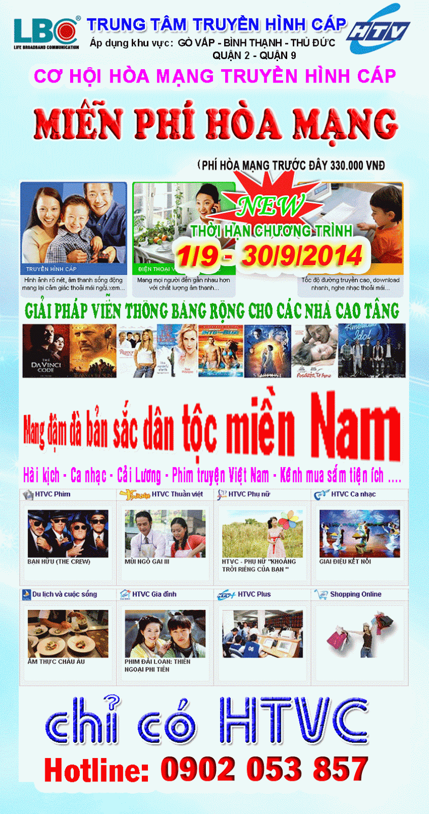 TRUNG TÂM TRUYỀN HÌNH CÁP HTVC các Quận: Bình Thạnh, Gò Vấp, Thủ Đức, Tân Bình, Tân Phú, Bình Tân, Quận 2, Quận 9.