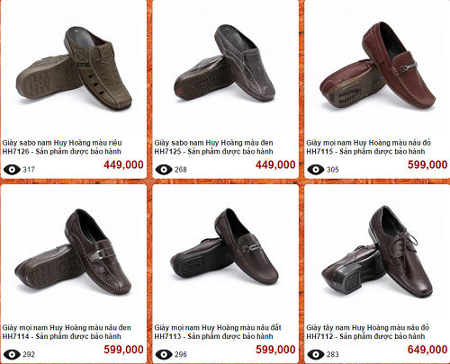 Huy Hoàng là thương hiệu được người tiêu dùng lựa chọn bởi các thiết kế bắt mắt, thời trang tạo phong cách từ chất liệu da thật 100%. Giày dép Huy Hoàngluôn là một món quà thật ý nghĩa dành cho phái mạnh. Nó không những là một món quà mà còn là sự ghi nhận, tôn vinh người được nhận quà.