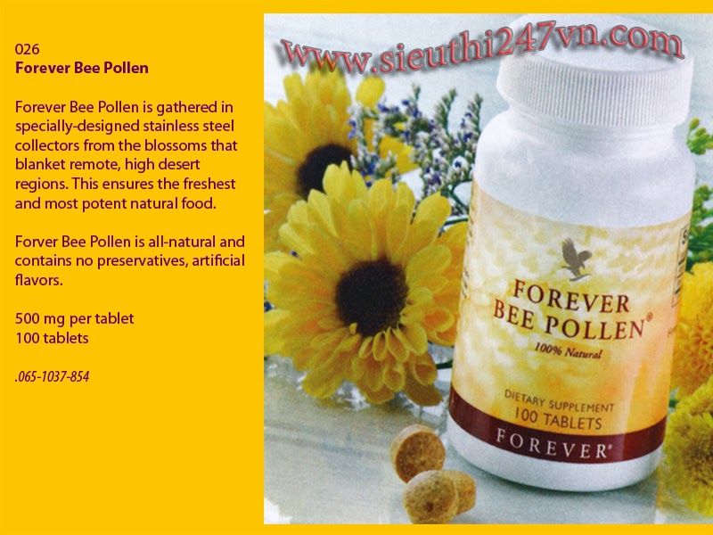 Forever đã sử dụng loại phấn ong tươi nguyên làm thành phần chính cho sản phẩm Thực phẩm chức năng Viên bổ sung dinh dưỡng Forever Bee Pollen®. Forever Bee Pollen® được sản xuất bằng những thiết bị hiện đại, đảm bảo mang lại cho các bạn một loại thực phẩm an toàn giúp tăng cường sức khỏe của bạn. Forever Bee Pollen® là một sản phẩm hoàn toàn tự nhiên, không mùi hay có phẩm màu nhân tạo.