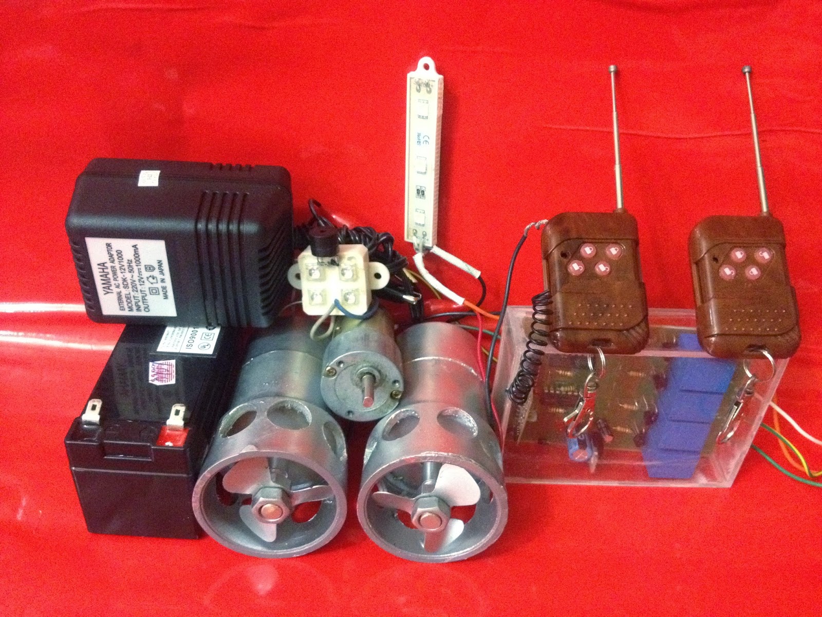 Lưu ý: Tất cả các phần điện đều được đựng trong hộp kín chống thấm nước tuyệt đối kể cả phần động cơ quay chân vịt điều này rất quan trọng vì thuyền hoạt động trong môi trường nước và chịu mưa gió.