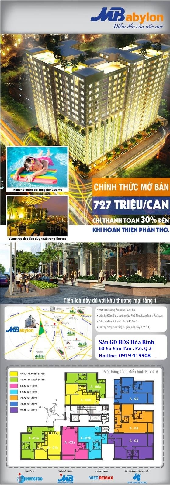 CĂN HỘ MB BABYLON MẶT TIỀN ĐƯỜNG ÂU CƠ QUẬN TÂN PHÚ GIÁ CHỈ 727 TR/CĂN