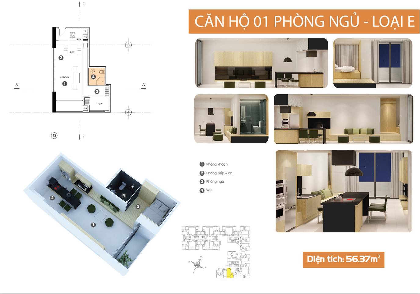 MẶT BẰNG CĂN HỘ 56.37 M2 |