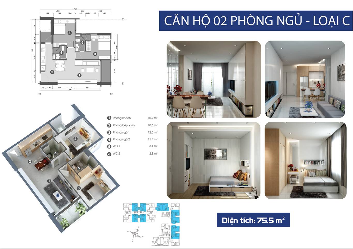 MẶT BẰNG CĂN HỘ 75.5M2 |