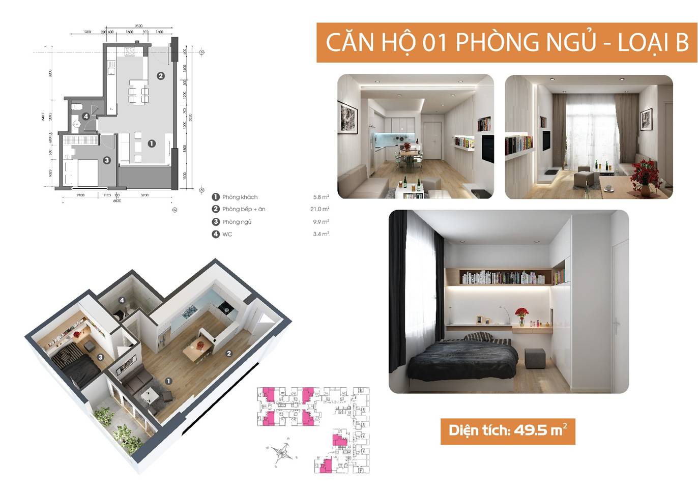 MẶT BĂNG CĂN HỘ 49.5 M2 |