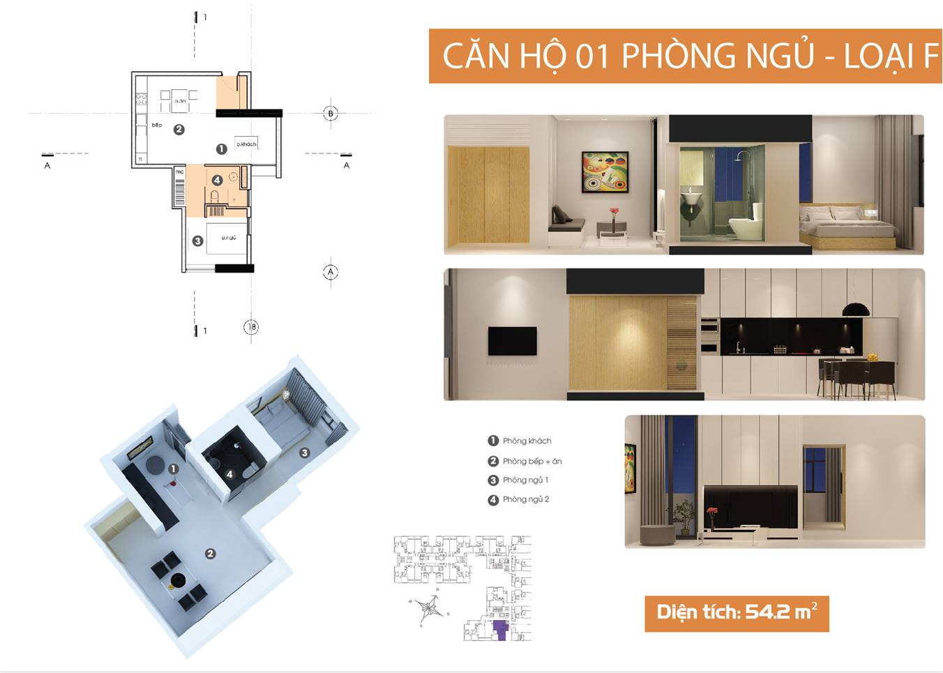 MẶT BẰNG CĂN HỘ 54.2 M2 |