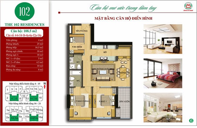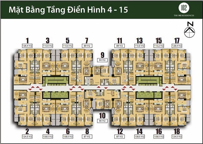 - Diện tích căn 2 PN: 87 - 89 - 94 - 95 - 108 - 110.5m2.