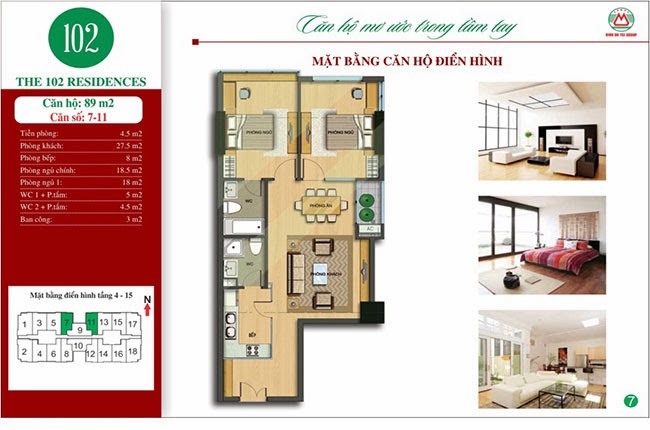 - Chung cư 102 Trường Chinh Kinh Đô thiết kế 16 - 18 căn hộ / mặt sàn với thiết kế căn hộ tiện nghi, thoải mái.
