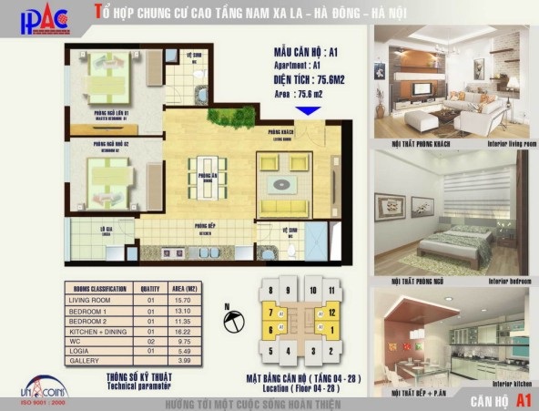 Diện tích (m2): 75m - có nghĩa là căn hộ có diện tích 75m2