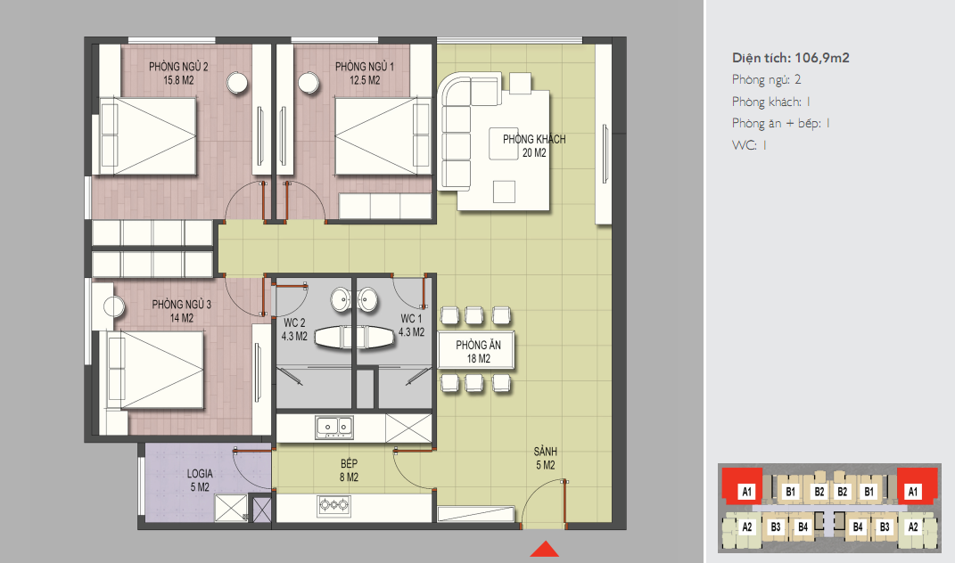 Căn hộ A1 (Căn số 1 và căn số 6):
