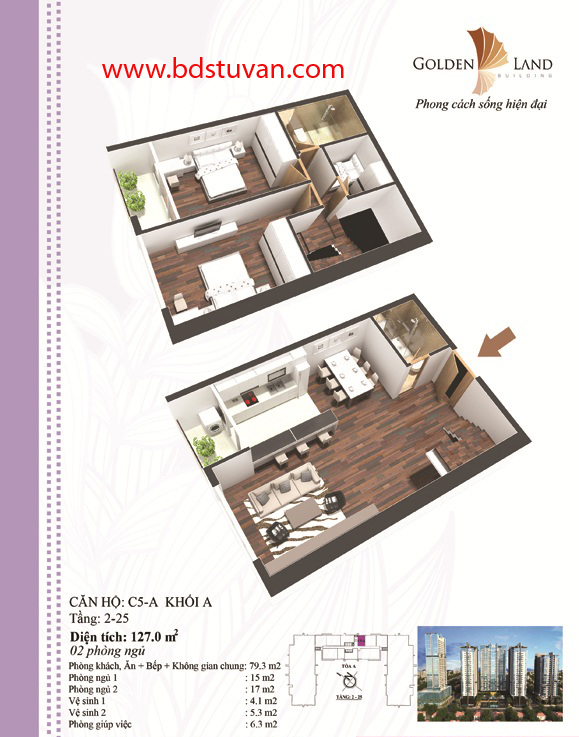 Dự án bao gồm 5 khối nhà (Từ 25 - 33 Tầng) với diện tích mặt bằng khoảng 5.501,0m2
