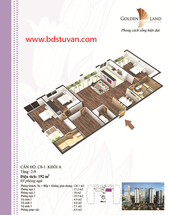 Khu căn hộ và nhà ở cao cấp được chia thành 3 tòa nhà chung nhau phần đế từ 3 tầng hầm đến tầng cao thứ 9. Đây là Tháp 3 đầu tiên tại Hà Nội gồm 2 block cao 25 tầng và 1 block cao 27 tầng, với hơn 500 căn hộ được chia thành 30 loại khác nhau có diện tích từ 73m2 cho đến 145m2.