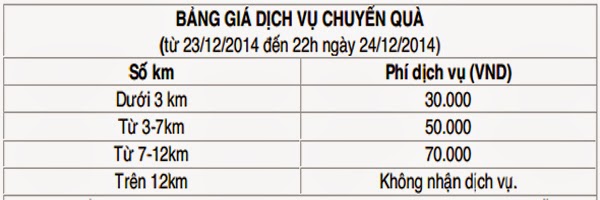 xin cung cấp cho khách hàng dịch vụ chuyển quà “Ông già Noel 2014” tốt