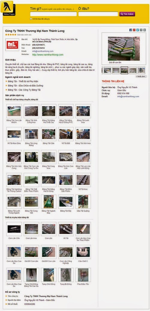 Trang vàng Việt Nam hỗ trợ miễn phí đăng thông tin đầy đủ và chi tiết như một Catalogue điện tử về doanh nghiệp gồm các phần như: thông tin về công ty, hình ảnh sản phẩm dịch vụ, hình ảnh công ty, hình ảnh nhà máy sản xuất, hình ảnh đội ngũ nhân viên, các giấy chứng nhận, chứng chỉ, giấy khen, thông tin người liên hệ và rất nhiều thông tin hữu ích khác,...