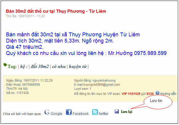 Khi xem 1 tin, bạn sẽ thấy xuất hiện chức năng Lưu tin, click vào chức năng này đồng nghĩa với tin của bạn đã được lưu.